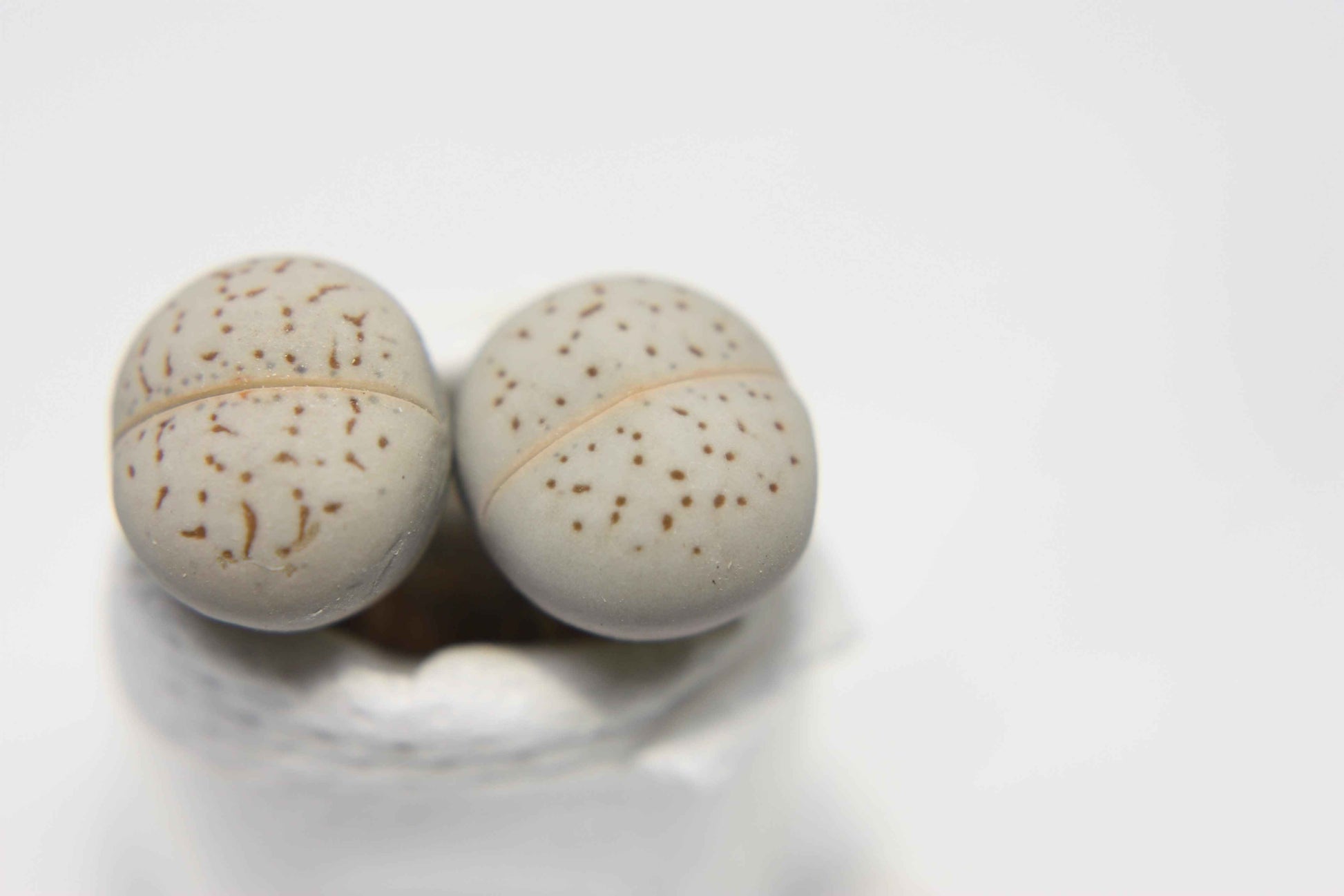 small succulents ~1" long leaves, similar to lithops but producing 2 leaves at a time |