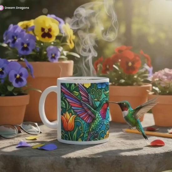 Hummingbird Colorful Mug: Stained Glass Design, Hot Chocolate, Coffee Mug, Tea Cup