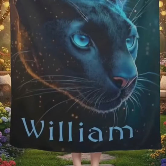 Bring magic, warmth, and personalisation into every moment with this bespoke black panther blanket - a gift that will be cherished forever! Perfect for cosmic nights, wildlife dreams, or simply celebrating the wild beauty and mystery of the celestial panther!