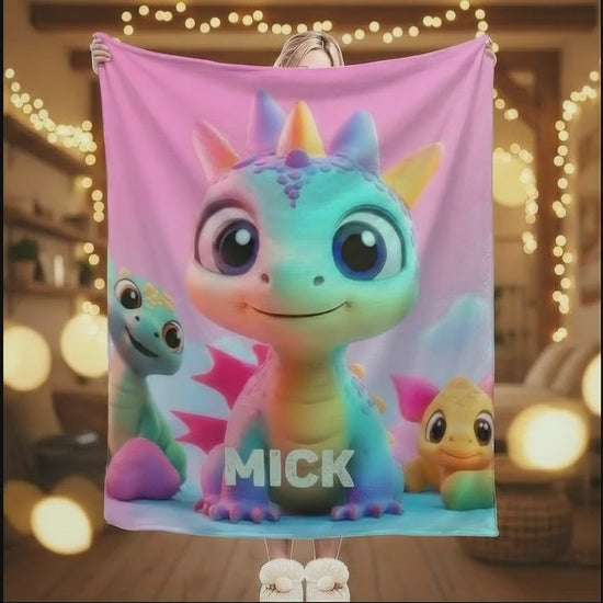 Bring a little magic into everyday moments with this delightful dragon blanket! Perfect for bedtime stories about brave dragons, fantasy-themed rooms, naptime cuddles, or simply celebrating the fun and charm of playful cartoon dragons. Watch their eyes light up when they receive this personalized dragon blanket!