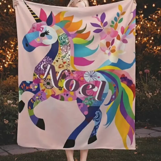 Elevate your gifting or personal space with this enchanting unicorn blanket, ensuring warmth, comfort, and a touch of personalisation that lasts.