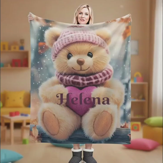 🧸❄️ Personalized Snow Teddy Bear Plush Blanket - A Magical Gift for Little Ones ❄️🧸
