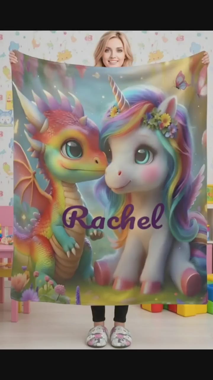 🦄🐉 Personalized Unicorn & Dragon Blanket - A Magical Fantasy Gift 🐉🦄